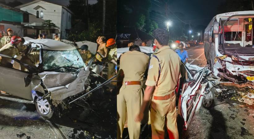 കോന്നി മുറിഞ്ഞകല്ലില് ഇന്ന് പുലര്ച്ചെയായിരുന്നു സംഭവം നടന്നത്. മല്ലശ്ശേരി സ്വദേശികളായ നിഖിൽ, അനു, ബിജു പി ജോർജ് (അനുവിന്റെ പിതാവ്), മത്തായി ഈപ്പൻ (നിഖിലിന്റെ പിതാവ്) എന്നിവരാണ് മരിച്ചത്. നവംബര് 30നായിരുന്നു മരണപ്പെട്ട അനുവും നിഖില് ഈപ്പനും വിവാഹിതരാകുന്നത്. ഇരുവരും മലേഷ്യയിൽ നിന്ന് തിരികെ വരികയായിരുന്നു. വീട്ടിലെത്താന് കിലോമീറ്ററുകള് മാത്രം ബാക്കി നില്ക്കെയായിരുന്നു അപകടം ഉണ്ടായത്.