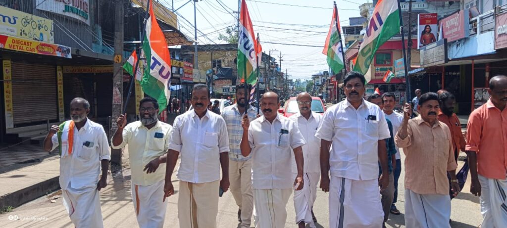 ചിറയിൻകീഴ് : ഐ.എൻ.ടി.യു.സി പ്രവർത്തകർ ചിറയിൻകീഴ് ബി.എസ്.എൻ.എൽ ഓഫീസിലേക്ക് മാർച്ചും ധർണയും നടത്തി. ദേശീയ തലത്തിൽ സംയുക്ത ട്രേഡ് യൂണിയനുകൾ നടത്തിയ പണിമുടക്കിനോടനുബന്ധിച്ചാണ് മാർച്ച് നടത്തിയത്. ഡി.സി.സി ജനറൽ സെക്രട്ടറി അഡ്വ.എസ്. കൃഷ്ണകുമാർ ധർണാ ഉദ്ഘാടനം ചെയ്തു.