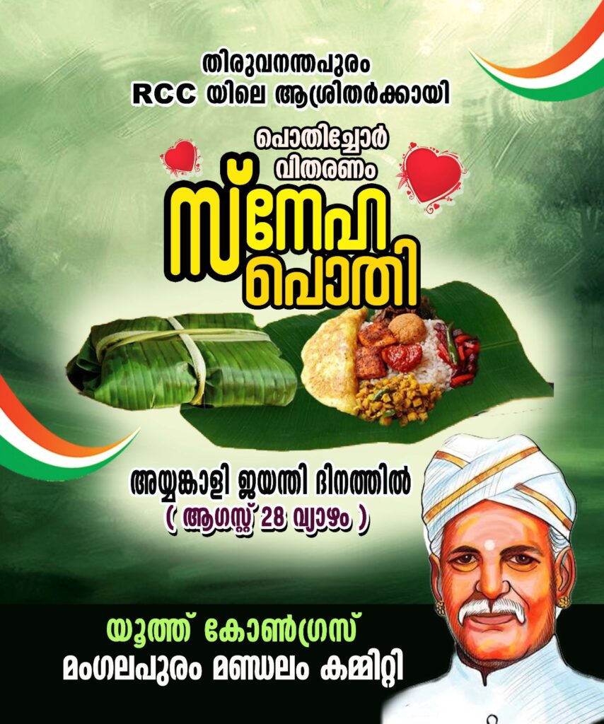 തിരുവനന്തപുരം: അയ്യങ്കാളി ദിനത്തിൽ (ആഗസ്റ്റ് 28 വ്യാഴാഴ്ച) യൂത്ത് കോൺഗ്രസ് മംഗലപുരം മണ്ഡലം കമ്മിറ്റിയുടെ നേതൃത്വത്തിൽ തിരുവനന്തപുരം RCC യിൽ നിർദ്ധരായ രോഗികൾക്കും കൂട്ടിരിപ്പുകാർക്കും ഉള്ള പൊതിച്ചോറ് വിതരണം നടത്തി.