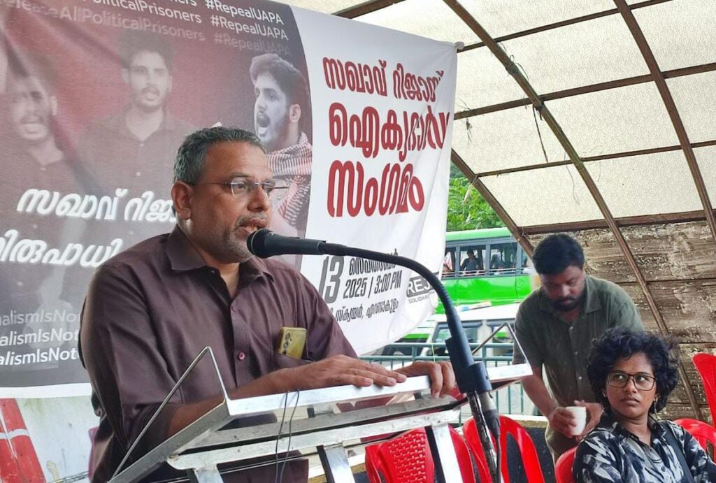 തിരുവനന്തപുരം: മഹാരാഷ്ട്രയിൽ അന്യായ തടങ്കലിൽ കഴിയുന്ന മലയാളിയായ മാധ്യമ പ്രവർത്തകൻ റിജാസിന് ഐക്യദാർഢ്യം പ്രഖ്യാപിച്ച് എറണാകുളത്ത് നടന്ന ഐക്യദാർഢ്യ പരിപാടിയിൽ പങ്കെടുത്തവർക്കെതിരെ കേസെടുത്ത പോലീസ് നടപടി തീർത്തും പ്രതിഷേധാർഹമാണെന്ന് വെൽഫെയർ പാർട്ടി സംസ്ഥാന ജനറൽ സെക്രട്ടറി സുരേന്ദ്രൻ കരിപ്പുഴ.