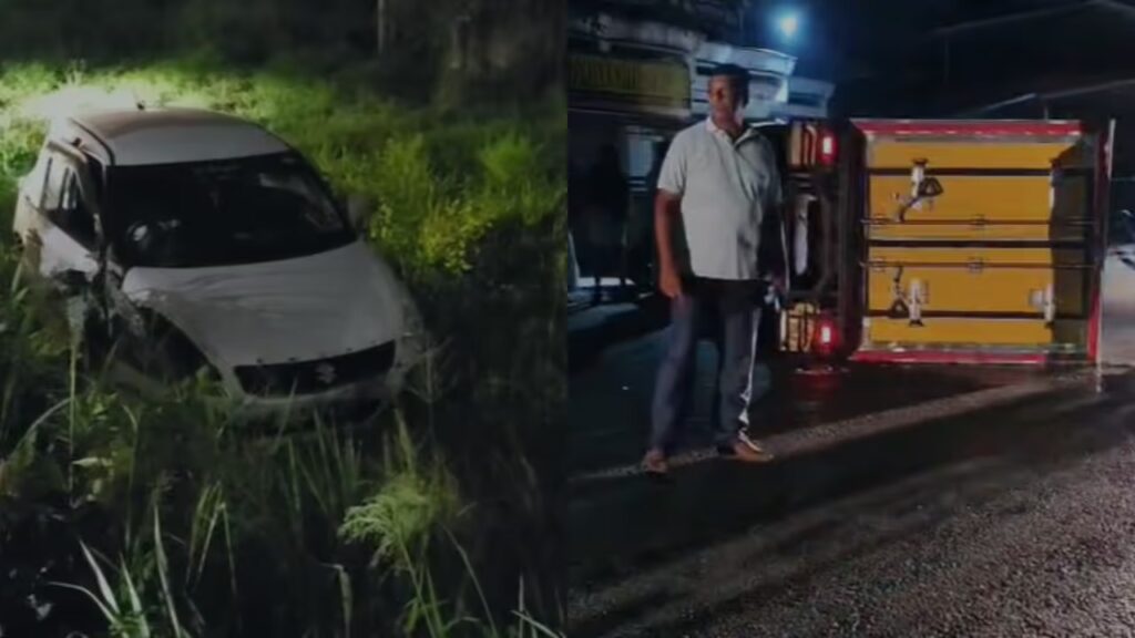 മത്സ്യം കയറ്റി വന്ന ലോറി കാറിൽ ഇടിക്കുകയായിരുന്നു. ഇടിയുടെ ആഘാതത്തിൽ കാർ നിയന്ത്രണം വിട്ട് റോഡിൽ നിന്നും അടുത്ത പുരയിടത്തിലേക്ക് തെന്നിമാറി വീണു. അപകടത്തിൽ ലോറി ഡ്രൈവർക്കും പരിക്കേറ്റു. മൂന്ന് പേരെയും അടുത്തുള്ള ആശുപത്രിയിൽ പ്രവേശിപ്പിച്ചിരിക്കുകയാണ്.