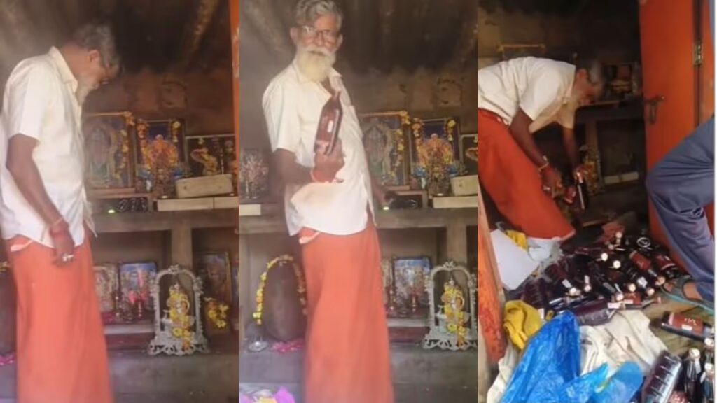 തിരുവനന്തപുരം: തിരുവനന്തപുരത്ത് കുടുംബക്ഷേത്രത്തിലെ വിഗ്രഹങ്ങൾക്കിടയിൽ സൂക്ഷിച്ചിരുന്ന നിലയിൽ മദ്യം കണ്ടെത്തി. തിരുവനന്തപുരം നെയ്യാറ്റിൻകരയിലാണ് സംഭവം. 30 ലിറ്റർ മദ്യമാണ് കുടുംബക്ഷേത്രത്തിലെ വിഗ്രഹങ്ങൾക്കും ഫോട്ടോകൾക്കുമിടയിൽ സൂക്ഷിച്ചിരുന്നത്.
