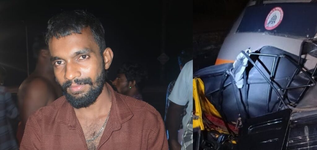 ഓട്ടോ ഡ്രൈവര് മദ്യ ലഹരിയിലായിരുന്നുവെന്നും വിവരമുണ്ട്. ഇയാള്ക്ക് പരിക്കേറ്റു. ഇയാളുടെ പരിക്ക് ഗുരുതരമല്ല. ഓട്ടോയിലുണ്ടായിരുന്ന ആൾ ഓടിമാറിയതിനാലാണ് വലിയ അപകടം ഒഴിവായത്. ട്രാക്കിൽ നിന്ന് ഓട്ടോ നീക്കി യാത്ര പുനരാരംഭിച്ചു.