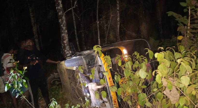 അപകടത്തിൽ ഓട്ടോ ഡ്രൈവർ അശ്വിൻ, യാത്രക്കാരനായ സനോജ് എന്നിവർക്കാണ് പരിക്കേറ്റത്. പെരിങ്ങമ്മല ഭാഗത്ത് നിന്നും വരികയായിരുന്ന ഓട്ടോറിക്ഷയ്ക്ക് നേരെയാണ് ആക്രമണം നടന്നത്. ഇടിയുടെ ആഘാതത്തിൽ ഓട്ടോറിക്ഷ തലകീഴായി മറിയുകയായിരുന്നു.