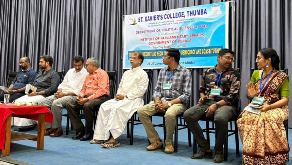 കഴക്കൂട്ടം:ഇന്ത്യൻ ഭരണഘടന തയ്യാറാക്കിയതിൽ സ്ത്രീകളുടെ പങ്ക് വീണ്ടെടുക്കേണ്ട കാലഘട്ടമായെന്ന് കേരള സ്റ്റേറ്റ് ലിറ്ററസി മിഷൻ അതോറിറ്റിയുടെ ഡയറക്ടർ എ. ജി. ഒലീന. ജനാധിപത്യം എല്ലാ പക്ഷത്തെയും ഉൾക്കൊള്ളുന്ന തലത്തിലേക്ക് ഉയരണമെന്നും ജനാധിപത്യത്തെയും ഭരണഘടനയെയും സംരക്ഷിക്കുന്നതിൽ ജുഡീഷ്യറിയുടെയും മാധ്യമങ്ങളുടെയും ധർമ്മത്തെക്കുറിച്ചുള്ള ദ്വിദിന ദേശീയ സെമിനാർ ഉദ്ഘാടനം ചെയ്തുകൊണ്ട് എ. ജി. ഒലീന അഭിപ്രായപ്പെട്ടു. തുമ്പ സെന്റ് സേവ്യേഴ്സ് കോളേജിലെ പൊളിറ്റിക്കൽ സയൻസ് വിഭാഗവും ഐ ക്യു എ സിയും സംയുക്തമായി കേരള സർക്കാർ ഇൻസ്റ്റിറ്റ്യൂട്ട് ഓഫ് പാർലമെൻ്ററി അഫയേഴ്സുമായി സഹകരിച്ചാണ് പരിപാടി സംഘടിപ്പിച്ചത്.
