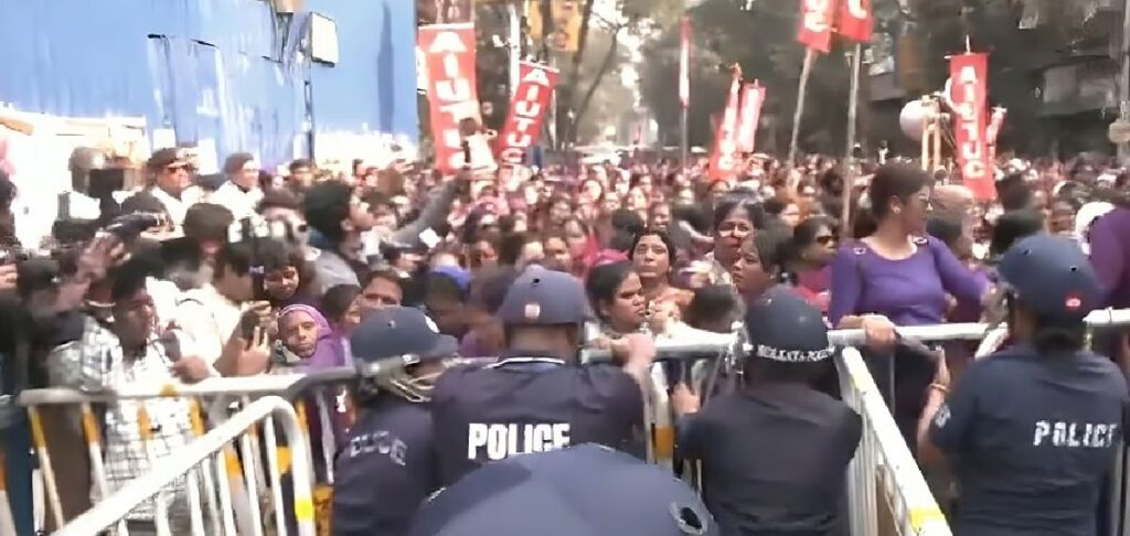 കൊല്ക്കത്ത: ഓണറേറിയം ഉയര്ത്തണമെന്നാവശ്യപ്പെട്ട് പശ്ചിമ ബംഗാളില് ആശവര്ക്കര്മാരുടെ പ്രതിഷേധം. ഇടക്കാല ബജറ്റില് പ്രഖ്യാപിച്ച ഓണറേറിയത്തില് മതിയായ വര്ധനവുണ്ടായില്ലെന്ന് ഉയര്ത്തിക്കാട്ടിയാണ് പ്രതിഷേധം. 1000 രൂപയാണ് സര്ക്കാര് വര്ദ്ധിപ്പിച്ചത്. പ്രതിമാസം കുറഞ്ഞത് 15000 രൂപ ഓണറേറിയം ലഭിക്കണമെന്ന് ആവശ്യപ്പെട്ടുകൊണ്ട് നൂറ്കണക്കിന് ആശവര്ക്കര്മാര് തെരുവിലിറങ്ങി പ്രതിഷേധിച്ചു. ബംഗാളിലെ ആരോഗ്യ വകുപ്പ് ആസ്ഥാനമായ സ്വാതിഭവന് മുന്പിലായിരുന്നു സമരം. ഇന്നലെ മമത ബാനര്ജി സര്ക്കാര് പ്രഖ്യാപിച്ച ഇടക്കാല ബജറ്റില് ആശാ വര്ക്കര്മാരുടെ ഓണറേറിയം പ്രതിമാസം 6250 രൂപയായി ഉയര്ത്തിയിരുന്നു.