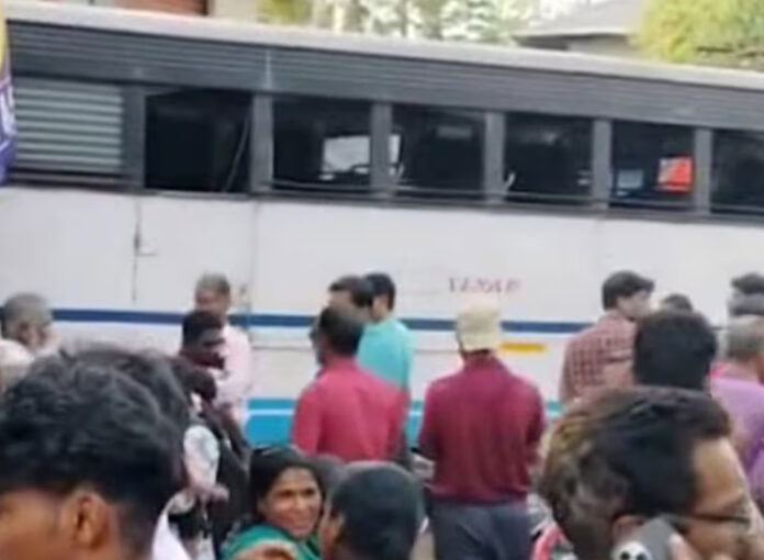 സ്‌കൂട്ടറില്‍ ഇടിച്ച ശേഷം നിയന്ത്രണം വിട്ട ബസ് സമീപത്തെ കടയിലേക്കും ഇടിച്ചുകയറുകയായിരുന്നു. നാട്ടുകാരുടെ നേതൃത്വത്തിലാണ് ആദ്യഘട്ടത്തില്‍ രക്ഷാപ്രവര്‍ത്തനം നടത്തിയത്. തുടര്‍ന്ന് അഗ്നിരക്ഷാസേന എത്തി രക്ഷാപ്രവര്‍ത്തനം നടത്തി. പരുക്കേറ്റവരെ സമീപത്തെ ആശുപത്രികളിലേക്ക് മാറ്റി. അപകടത്തെത്തുടര്‍ന്ന് കൊപ്പത്ത് ഗതാഗതം തടസപ്പെട്ടു.