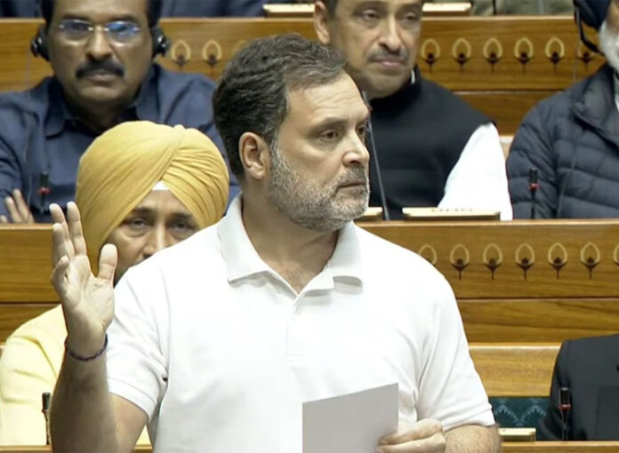 ന്യൂഡല്‍ഹി: ഇന്ത്യ-യു.എസ് വ്യാപാര കരാറില്‍ കേന്ദ്ര സര്‍ക്കാരിനെ രൂക്ഷമായി വിമര്‍ശിച്ച് ലോക്‌സഭാ പ്രതിപക്ഷ നേതാവ് രാഹുല്‍ഗാന്ധി. ഇന്ത്യയെ കേന്ദ്രവും മോദിയും അമേരിക്കയ്ക്ക് വിറ്റെന്ന് രാഹുല്‍ ആരോപിച്ചു. വ്യാപാര കരാറിലൂടെ ഇന്ത്യയെ വിറ്റഴിക്കാന്‍ കേന്ദ്ര സര്‍ക്കാരിനു നാണമില്ലേയെന്നു രാഹുല്‍ ചോദിച്ചു. നിങ്ങള്‍ ഇന്ത്യയെയാണ്, ഭാരതമാതാവിനെയാണ്, നമ്മുടെ അമ്മയെയാണ് വിറ്റത്, ലജ്ജ തോന്നുന്നില്ലേ എന്നും രാഹുല്‍ ഗാന്ധി ലോക്‌സഭയില്‍ ചോദിച്ചു. ബജറ്റ് ചര്‍ച്ചയില്‍ സംസാരിക്കുകയായിരുന്നു രാഹുല്‍.