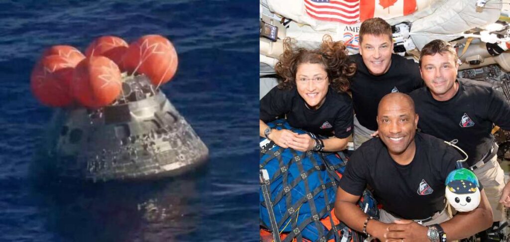 54 വര്ഷത്തിന് ശേഷമാണ് മനുഷ്യര് ചന്ദ്രന്റെ ഭ്രമണപഥത്തിലേക്ക് വീണ്ടും പ്രവേശിച്ചത്. യുഎസിൽ നിന്നുള്ള റീഡ് വൈസ്മാൻ, വിക്ടർ ഗ്ലോവർ, ക്രിസ്റ്റീന കുക്ക്, കാനഡക്കാരൻ ജെറമി ഹാൻസൻ എന്നിവരാണ് തിരികെയെത്തിയത്. ഭൂമിയിൽ നിന്ന് കാണാൻ കഴിയാത്ത ചന്ദ്രന്റെ വശം കണ്ടാണ് ഒറയോൺ പേടകം ചന്ദ്രനെ ചുറ്റി വന്നത്.