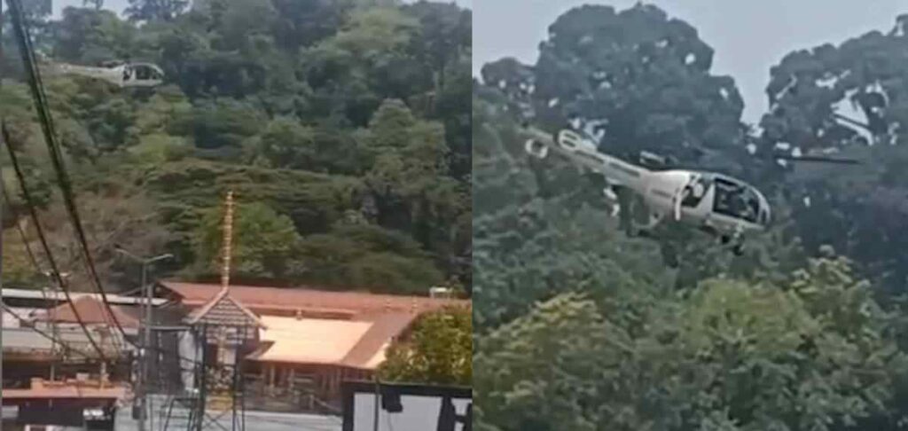 പത്തനംതിട്ട: ശബരിമല സന്നിധാനത്ത് ക്ഷേത്രത്തിന്റെ മുകളിലൂടെ ഹെലികോപ്റ്റർ പറന്നു. സൈനിക ഹെലികോപ്റ്റരാണ് ക്ഷേത്രത്തിന്റെ മുകളിലൂടെ പറന്നത്. സംഭവത്തില് പൊലീസ് കേസെടുത്തു. പമ്പ പൊലീസാണ് കേസ് രജിസ്റ്റര് ചെയ്തത്.